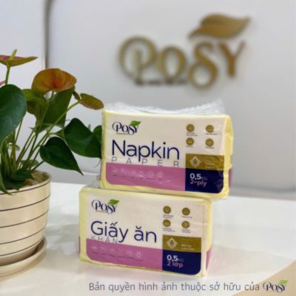 - Chất liệu cao cấp: Giấy được làm từ nguyên liệu bột giấy chất lượng cao, mềm mại, không gây kích ứng da và an toàn cho người sử dụng. Giấy ăn POSY có khả năng thấm hút tốt, giúp làm sạch tay và mặt hiệu quả trong các bữa ăn.